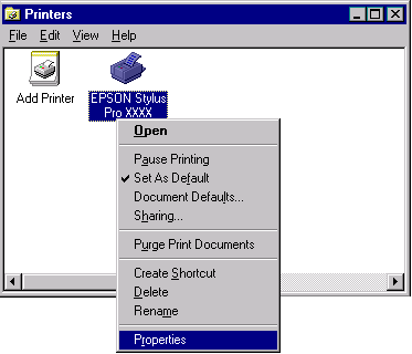 Click Start and open Printers and Faxes, right-click your printer's icon, then open the Properties for your printer.