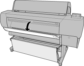 When the paper cutter holder stops at the replacement position, OPEN FRONT COVER appears. Open the front cover.