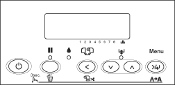 The control panel of the printer consists of 6 buttons, 3 lights, and a 32-character liquid crystal display (LCD).
