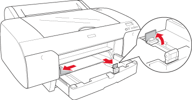 | Pull the paper guide, and slide the edge guide to the left as far as it will go. |