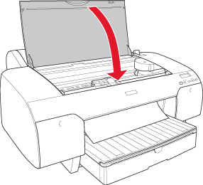Now the printer is ready to print. While the printer is printing, do not open the top cover. If the top cover is opened while printing, the printer stops printing, and then restarts printing when the top cover is closed. Stopping and restarting printing may reduce the print quality.