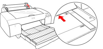 | Pull the paper guide roller up, and slide the edge guide to the left as far as it will go. |