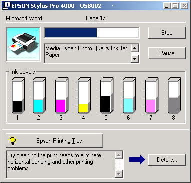 To cancel the printing in progress, click Stop on the EPSON Progress Meter.