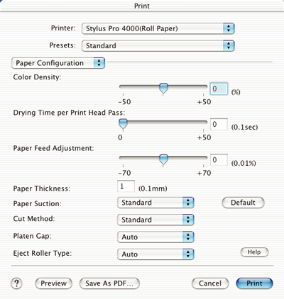 The following settings in Paper Configuration let you make the detailed paper settings. If you are using non-Epson special media, make these settings as needed.