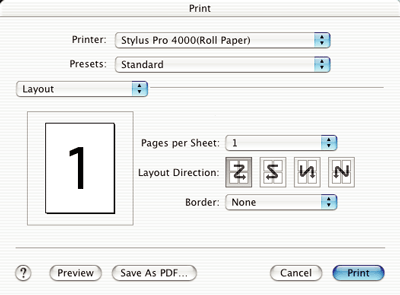You can make the appropriate Pages per Sheet, Layout Direction, and Border settings that you want to use for printing.