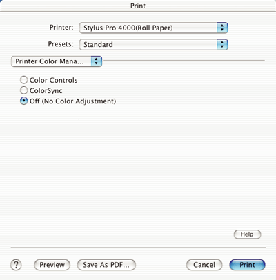 Select this setting to use the color matching and adjustment methods provided with the printer.