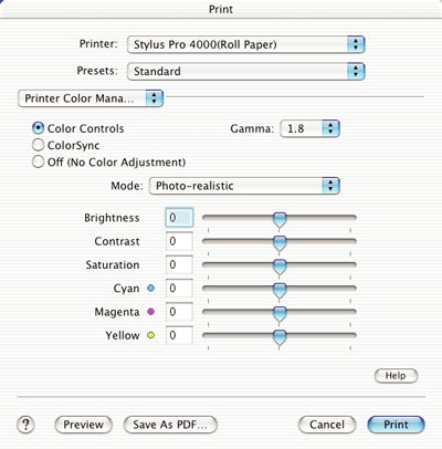 This option gives you control over the color matching and adjustment methods provided with the printer driver.
