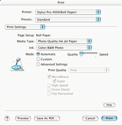 Automatic is the quickest and easiest way to start printing. When Automatic is selected, the printer driver takes care of all detailed settings based on the current Media Type and Ink settings.
