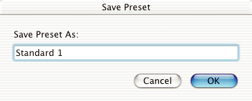 | Make sure that the name you entered in step 2 is saved in the Presets pull-down menu. |