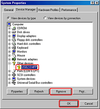 Under Other devices, select USB Printer or EPSON Stylus Pro 4000, and click Remove. Then click OK.