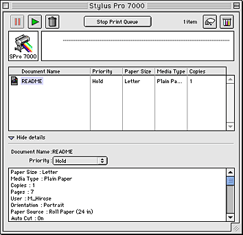 After you send a print job to the printer, you can use the EPSON Monitor3 utility to check on, control, or cancel print jobs that are queued for printing. This utility also shows the status of the job currently being printed.