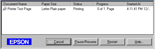 The EPSON Spool Manager is similar to Windows Print Manager. If it receives two or more print jobs at one time, it holds them in the order that they were received (with printers on a network this may be cancelled a print queue). When a print job reaches the top of the line, the EPSON Spool Manager sends the job to the printer.