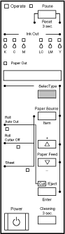 Selects the paper source: Roll Auto Cut, Roll Cutter Off or Sheet. When pressed in SelecType mode, a desired item can be selected from the menu. |