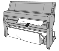 Carefully pull down the jammed paper. "TURN PWR OFF AND ON" is displayed on the LCD panel.