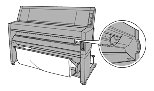 When you install two roll paper spindles, secure the roll paper that you are not using with the roll paper belt packed with your printer. See Using the roll paper belt.