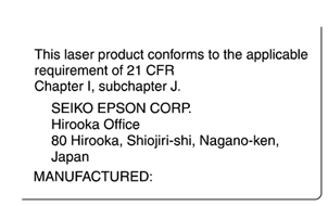 This printer is certified as a Class 1 laser product under the U.S. Department of Health and Human Services (DHHS) Radiation Performance Standard according to the Radiation Control for Health and Safety Act of 1968. This means that the printer does not produce hazardous laser radiation.