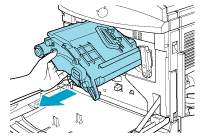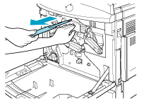 Gently pull the transfer belt unit out about 20 cm and the handle will spring up.