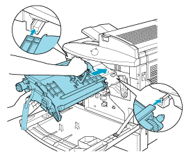 Reinstall the photoconductor unit, making sure that the bottom of the unit slide into the guide rails.