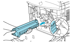 Keep the photoconductor unit in a safe place during the replacement procedure. Be sure not to touch the green drum.