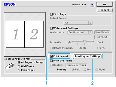 "Layout printing" prints either two or four pages onto a single page and to specify the printing order, automatically resizing each page to fit the specified paper size. You can also choose to print documents surrounded by a frame.