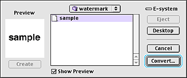 | Select the PICT file and click Convert. When you click Create, the watermark is displayed on the preview window. |