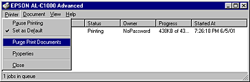 | You can also cancel the current print job that is sent from your computer, by clicking Cancel Printing on the EPSON Status Monitor 3 dialog box. When canceling the print job, be careful not to cancel the print job from the other user's computer. |
