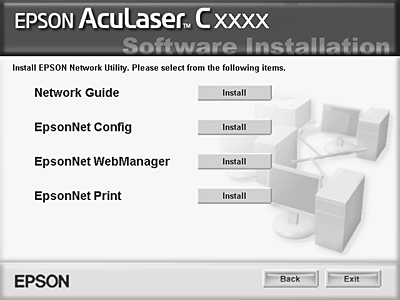 | Click the Install button located next to EpsonNet Config. |