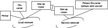 Since access is made only to the primary server, no dial-up is generated. However, if the file server/print server of the remote network is erroneously set as the primary server, an unnecessary dial-up might be generated. Correct the settings to avoid this problem.