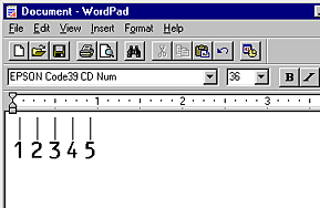 Follow these steps to create and print bar codes using EPSON BarCode Fonts. The application featured in these instructions is Microsoft WordPad. The actual procedure may differ slightly when printing from other applications.