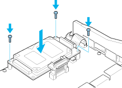 Align the three screw holes on the Hard Disk Drive with the screw holes on the circuit board. Secure it by tightening the three screws provided.