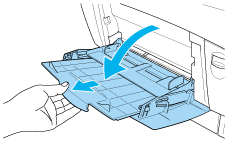 Open the MP tray, then pull out the expansion tray on the MP tray to accommodate the size of the media you want to load.