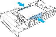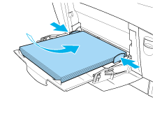 Load a stack of the desired media with the printable surface facing down, then slide the guides against the sides of the stack to get a snug fit.