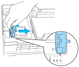 Slide the guides to accommodate the paper you are loading. Tilt the rear guide forward to slide it.
