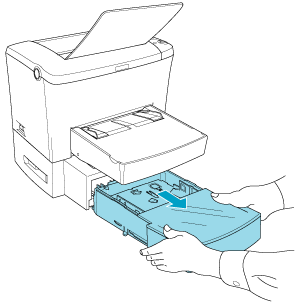 Carefully lift the printer off the 500-Sheet Lower Paper Cassette Unit A4 and place it on a flat stable surface.