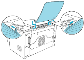 The printer normally outputs paper face-down on top of the printer. If you want face-up output, you can install the optional Face-up tray (C12C813801). This tray gives you immediate viewing of your printed output and is recommended for printing on media that requires a straight-through paper path, such as labels, thick paper, and transparencies.