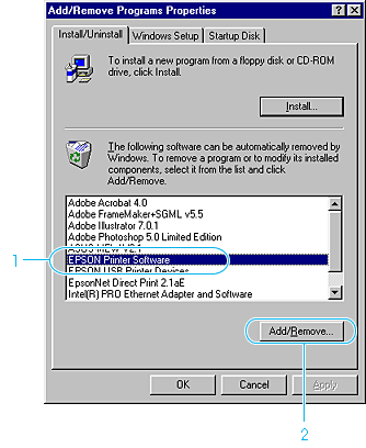 | Select the EPSON Printer Software, then click Add/Remove. |