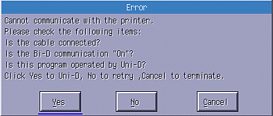 If the Remote Control Panel utility was not able to communicate with the printer in bidirectional mode, it returns the following error dialog box. If bidirectional communication is possible, skip this section and go directly to Mode-Select dialog box.