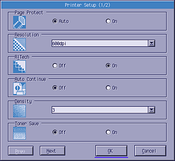 | This button and the dialog box are available in LaserJet4 mode only. |