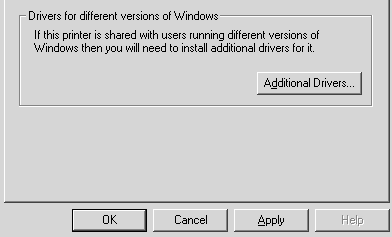 When the printer server's OS is Windows XP, 2000, or NT 4.0, you can install the additional drivers in the server. The additional drivers are the drivers for the client computers that have different OS from the server.