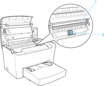 Fine particles of dust can collect inside the printer, affecting print quality. Follow the steps below to clean the inside of the printer and the paper feeder: