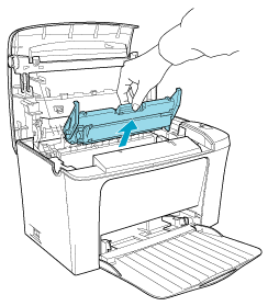 Insert the pins on both sides of the new photoconductor unit into the grooves inside the printer. Slide the unit gently into the opening until it locks into place.