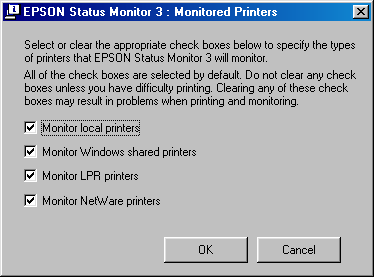 Select the EPSON Status Monitor 3: Monitored Printers check box and click OK.