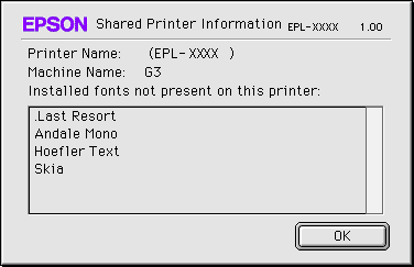 The following type of message appears if the client has fonts that are unavailable on the printer server.