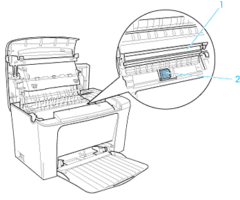 Fine particles of dust can collect inside the printer, affecting print quality. Follow the steps below to clean the inside of the printer and the paper feeder: