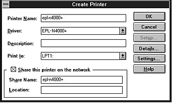 Verify that all your settings and are correct in the Create Printer dialog box. Make changes if necessary.