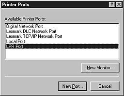 Select LPR Port from the Available Printer Port list, and click the New Port button.