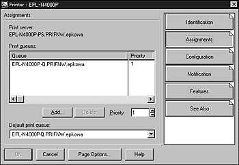 To assign the print queue, double-click the Printer object icon (created in step 9). The Printer dialog box appears.
