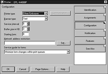 Click Configuration in the Printer dialog box, and select Parallel from the Printer type pull-down menu.