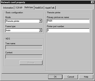 Select None for the Printer Type, and Novell Port Handler for the Port Handler Type. Then click OK.