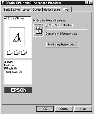 EPSON Status Monitor 3 monitors the printer during printing or when the EPSON Status Monitor 3 dialog box is opened.